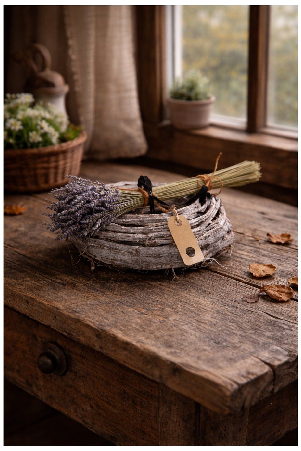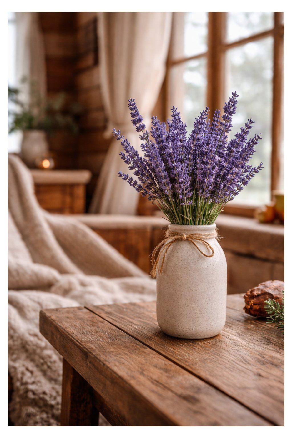 - dekor: sušená levanduľa (zväzok viazaný špagátom z jutoviny)