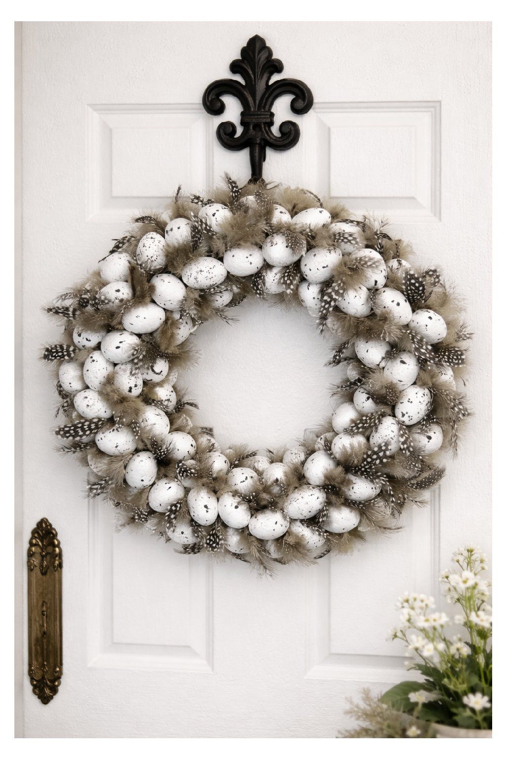 Elegantný veľkonočný venček s pierkami