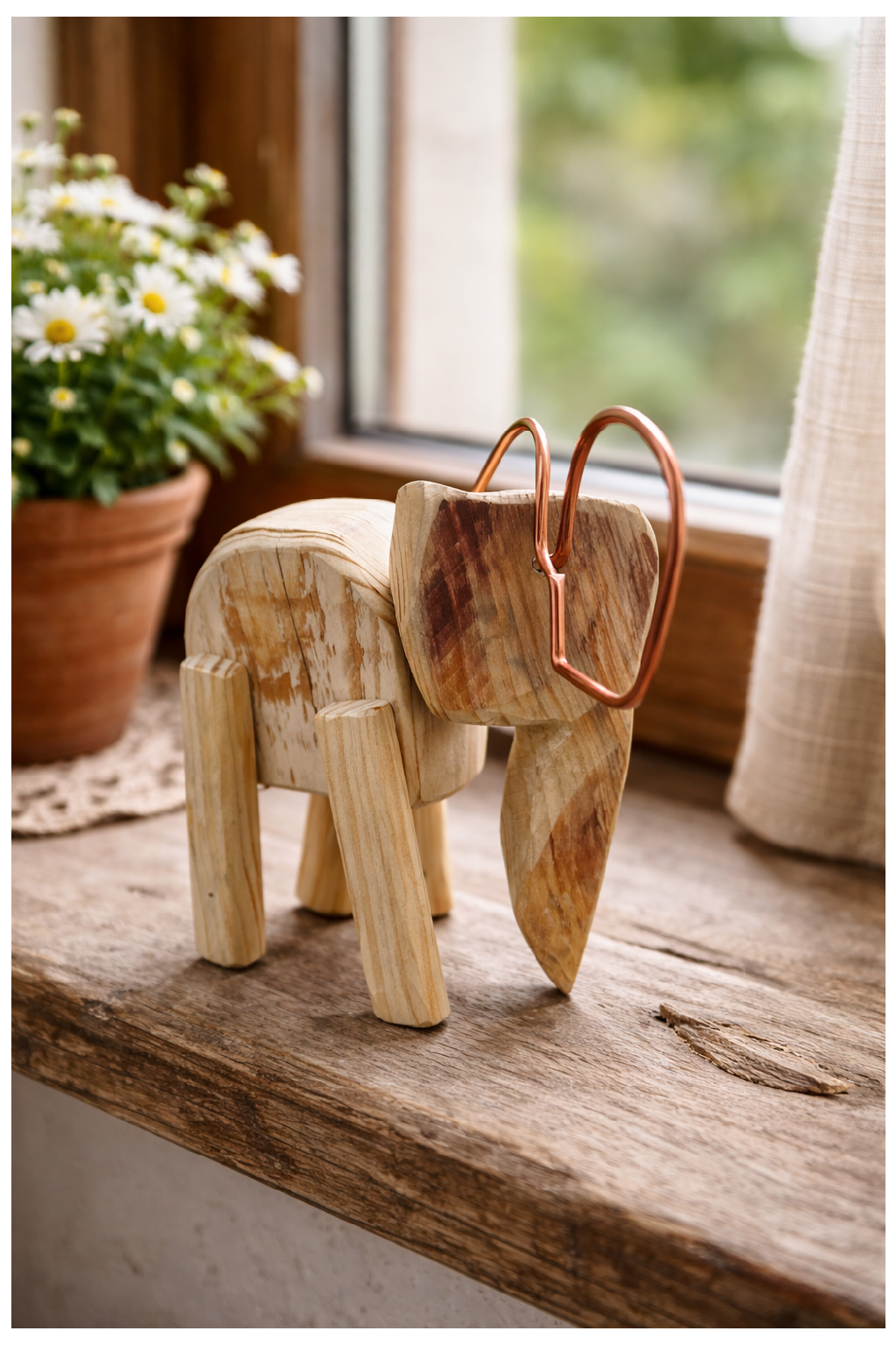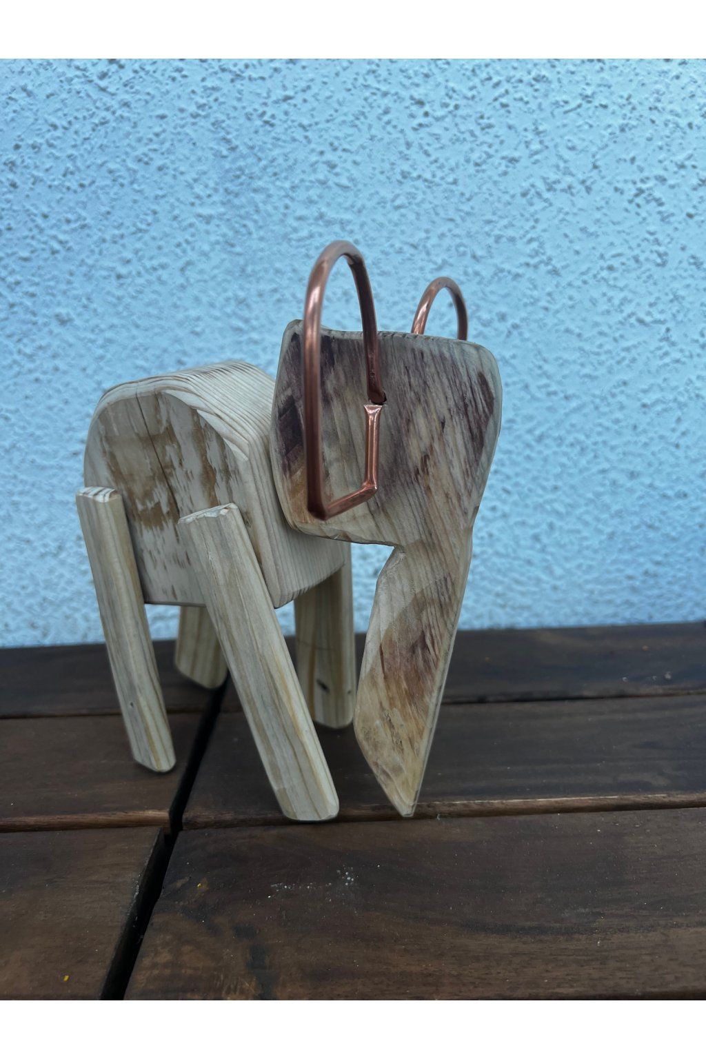 Tento drevený slon je originálna ručne vyrobená dekorácia, ktorá spája krásu prírodného materiálu s netradičným detailom v podobe kovových uší. Každý kus je jedinečný vďaka prirodzenej kresbe dreva, farebným odtieňom a poctivému ručnému spracovaniu môjho brata, ktoré mu dodáva osobitý charakter.