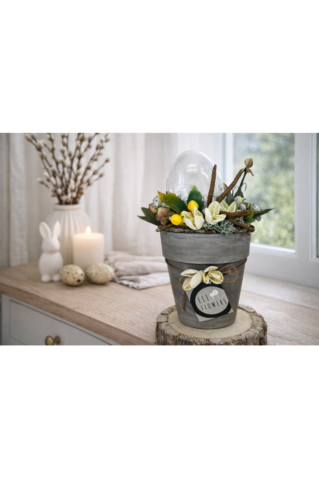 ✅ Materiál: kvetináč, sklenené vajíčko, dekoratívne prvky